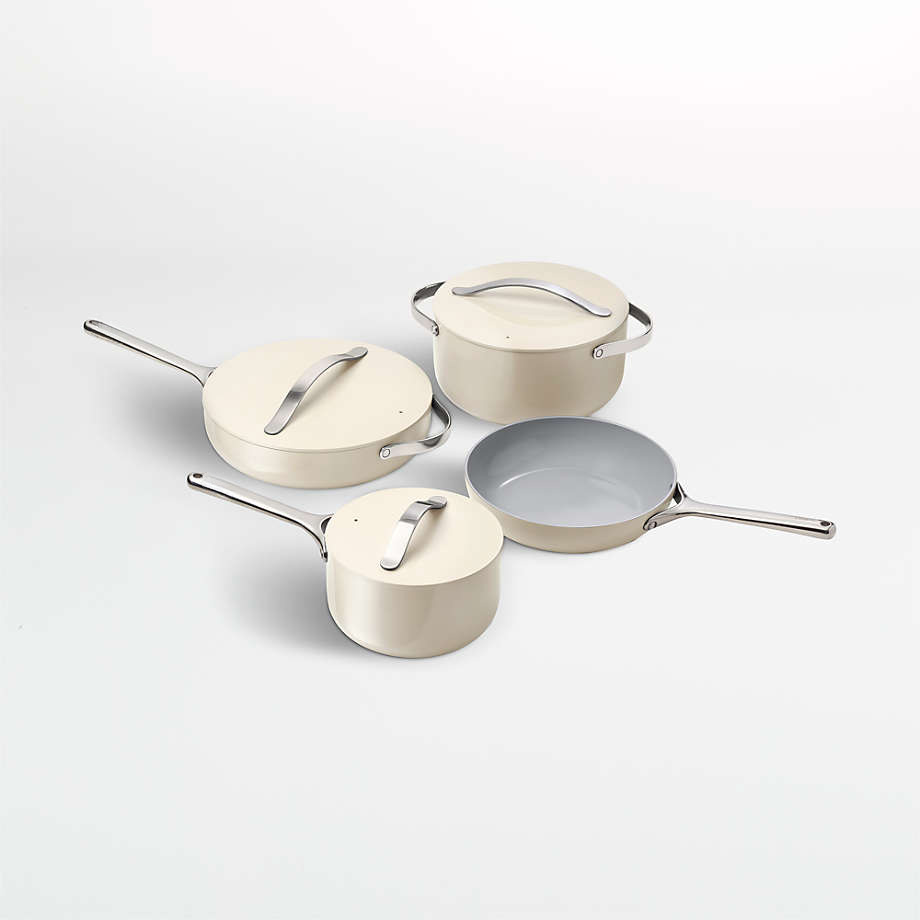 The Utenzo Home 4-Piece Non-Stick Ceramic Cookware Set includes: 10.5″ fry pan, 3-quart lidded saucepan, 4.5-quart lidded saute pan and 6.5-quart lidded dutch oven