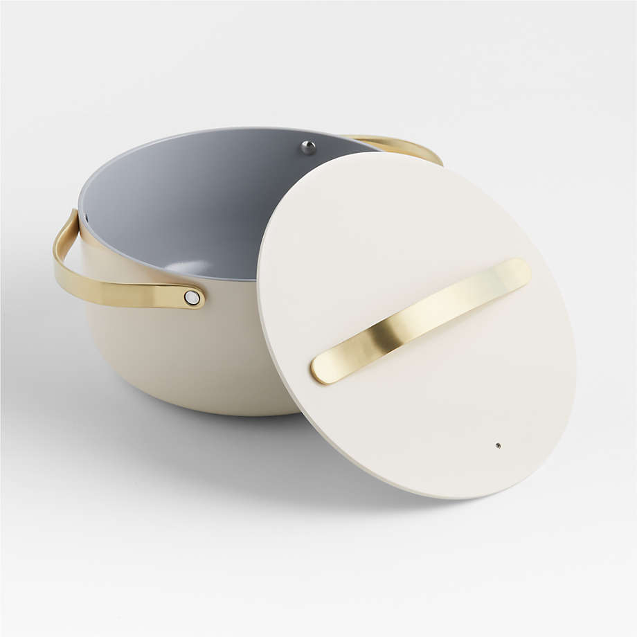 Utenzo Home Cream Supper Non-Stick Ceramic 6.5-Qt. Dutch Oven with Gold Hardware